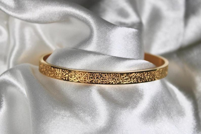 1 Pc Ayat-ul-Kursi Design Gold Plated Kara Bangle