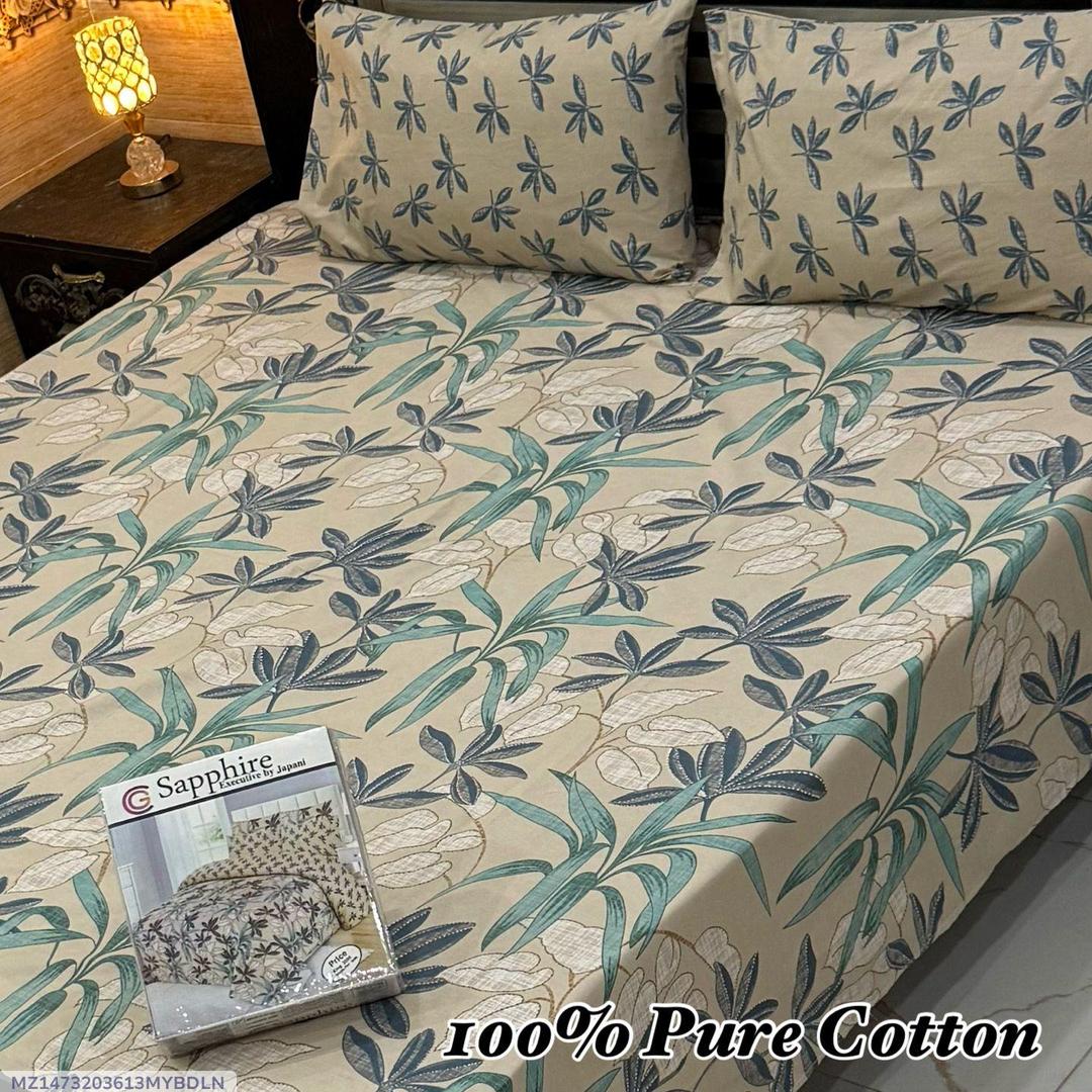 3 Pcs Cotton Salonica Printed Double Bedsheet