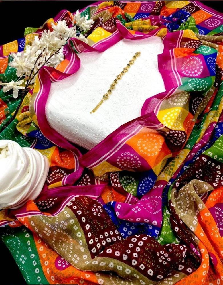 3 Pcs Women’s Unstitched Chikankari Chikankari Embroidered Suit