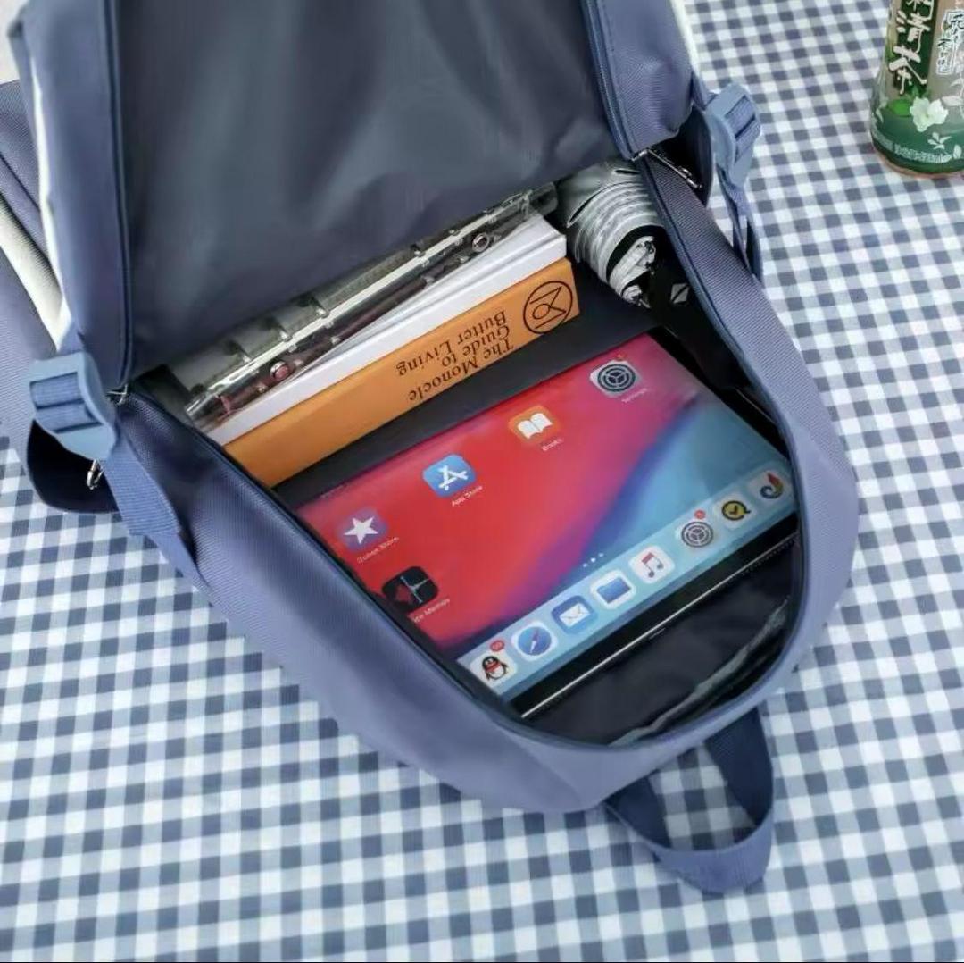 Elevate your style with this trendy 4-piece backpack set, perfect for school or outings. Made from durable materials, it includes a main backpack, a tote, and accessories for all your needs