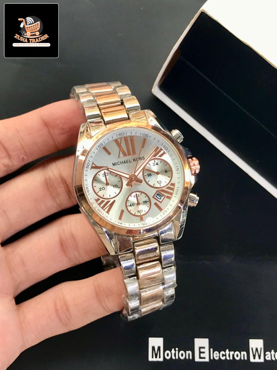 Roman Model Round Dial Fine Quality Quartz Machine Date Working Stainless Steel Chain 5 Different ColoursPRICE: 2800/- Only