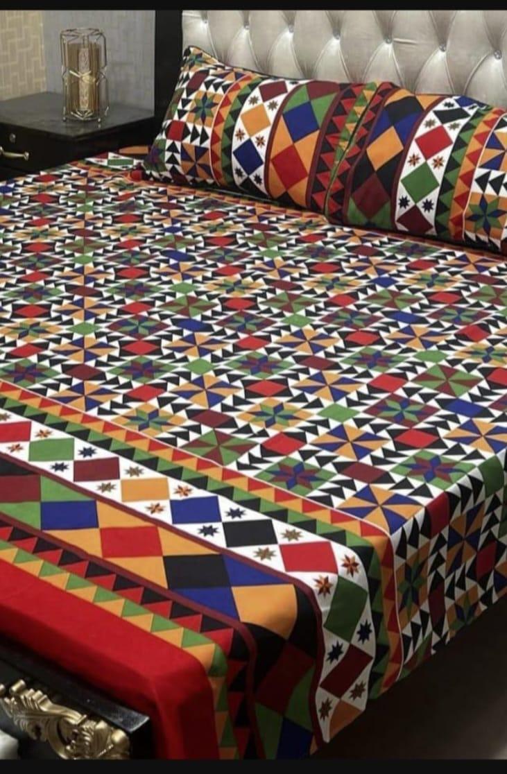 Transform your bedroom with this stunning Double Bedsheet set featuring a vibrant printed design. Made from premium Crystal Cotton, this 3-piece ensemble includes 1 bedsheet and 2 pillow covers, ensuring cozy comfort and style. Perfect for a double bed, this multicolor set will instantly elevate your space and provide a fresh look to your decor.